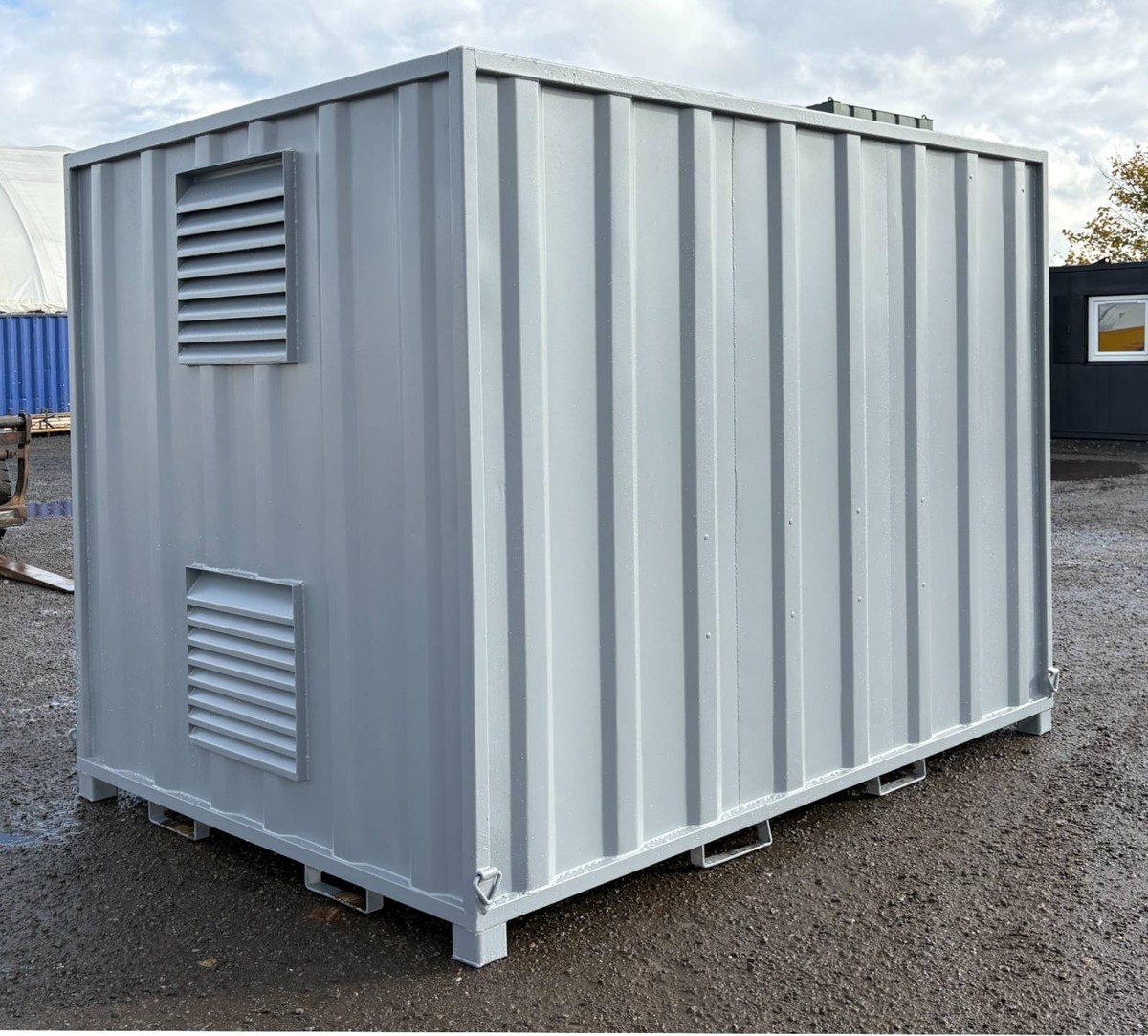 Container is in used condition. Lifting eye points and forklift pockets for transportation and placement on site.