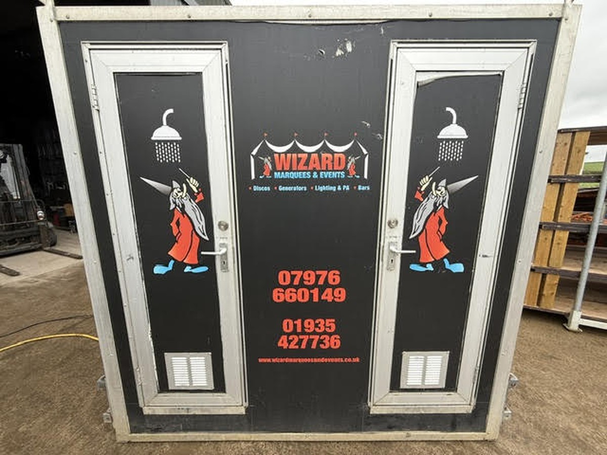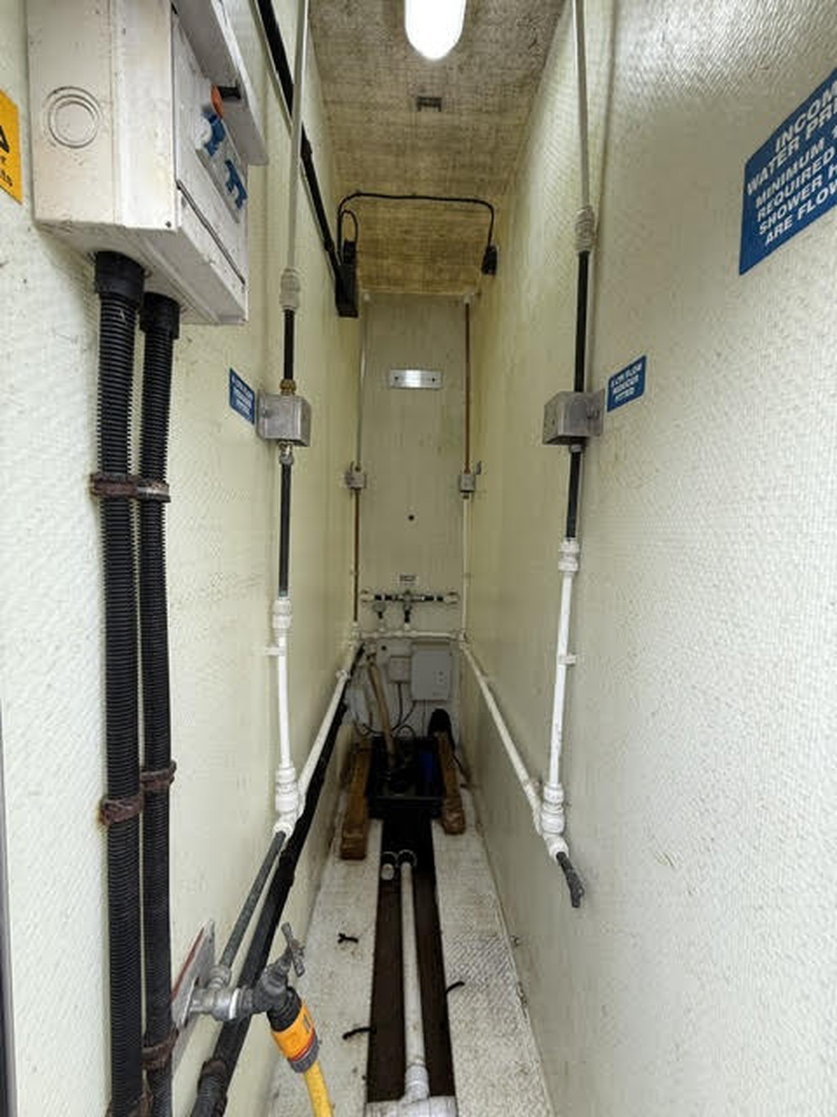 Self contained 4 cubicle shower blockFork pockets and lifting eyes for loading onto a truck or trailer