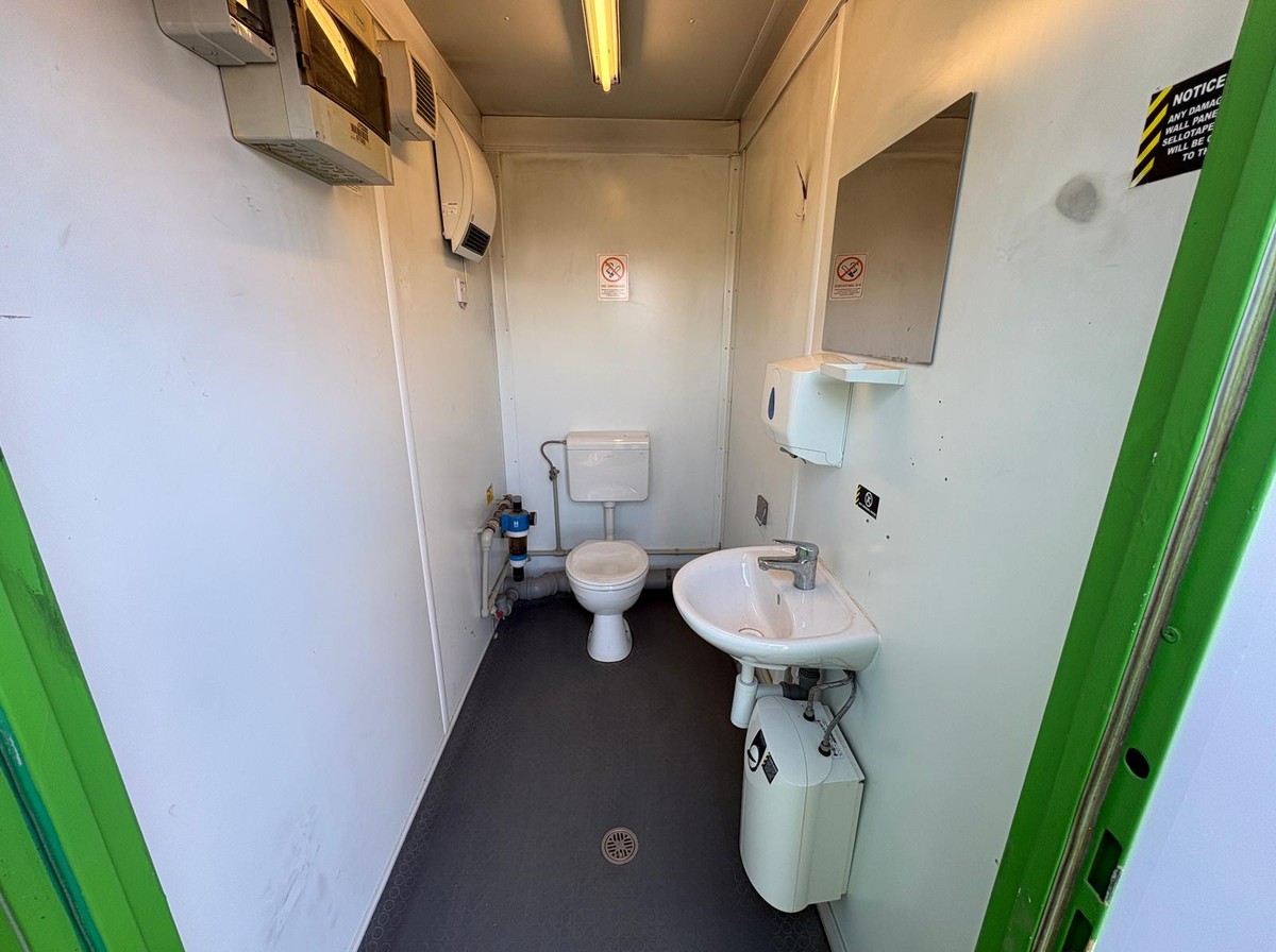Used modular 3+1 toilet block cabin split 80% large cubicle/urinal block and 20% separate toilet room.Features: