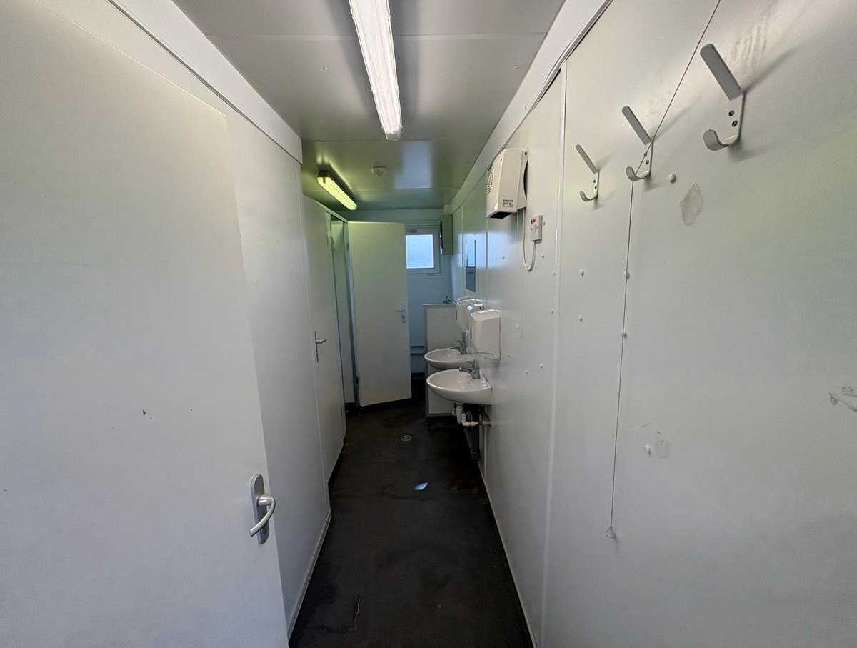 Used modular 3+1 toilet block cabin split 70% large cubicle/urinal block, 20% separate toilet room and 10% corridor.Fitted with: