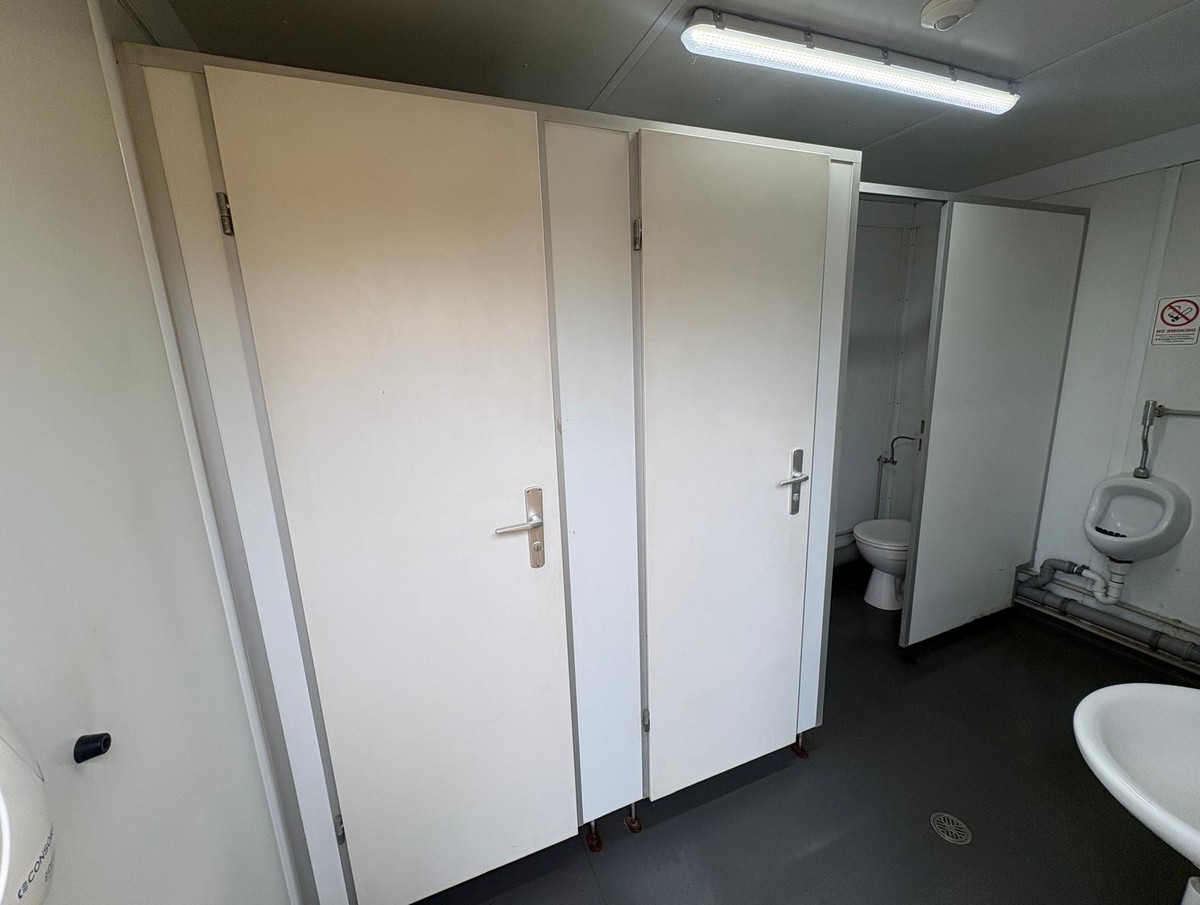 Used modular 3+1 toilet block cabin split 80% large cubicle/urinal block and 20% separate toilet room.Features Include: